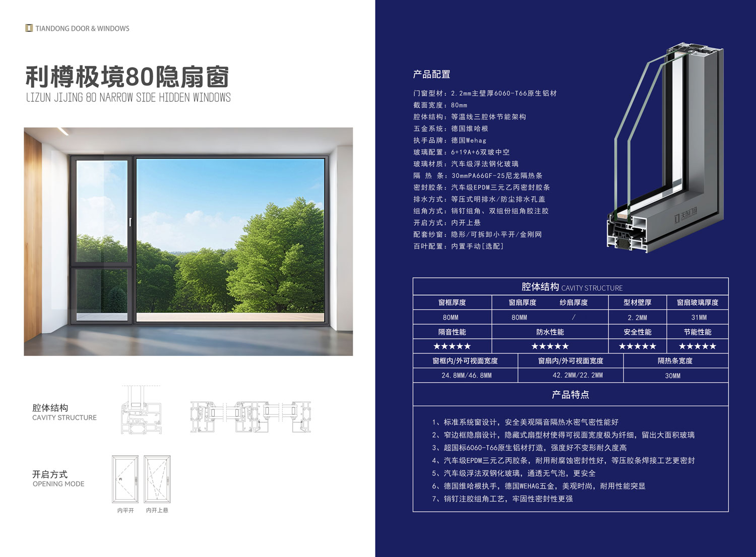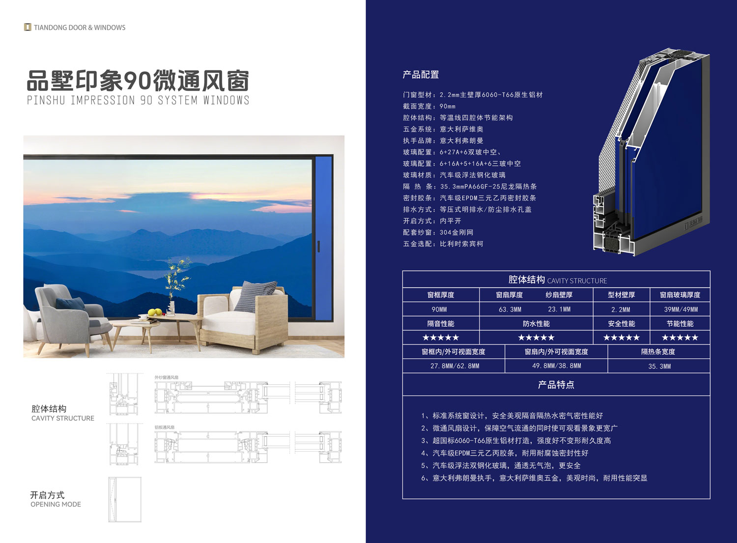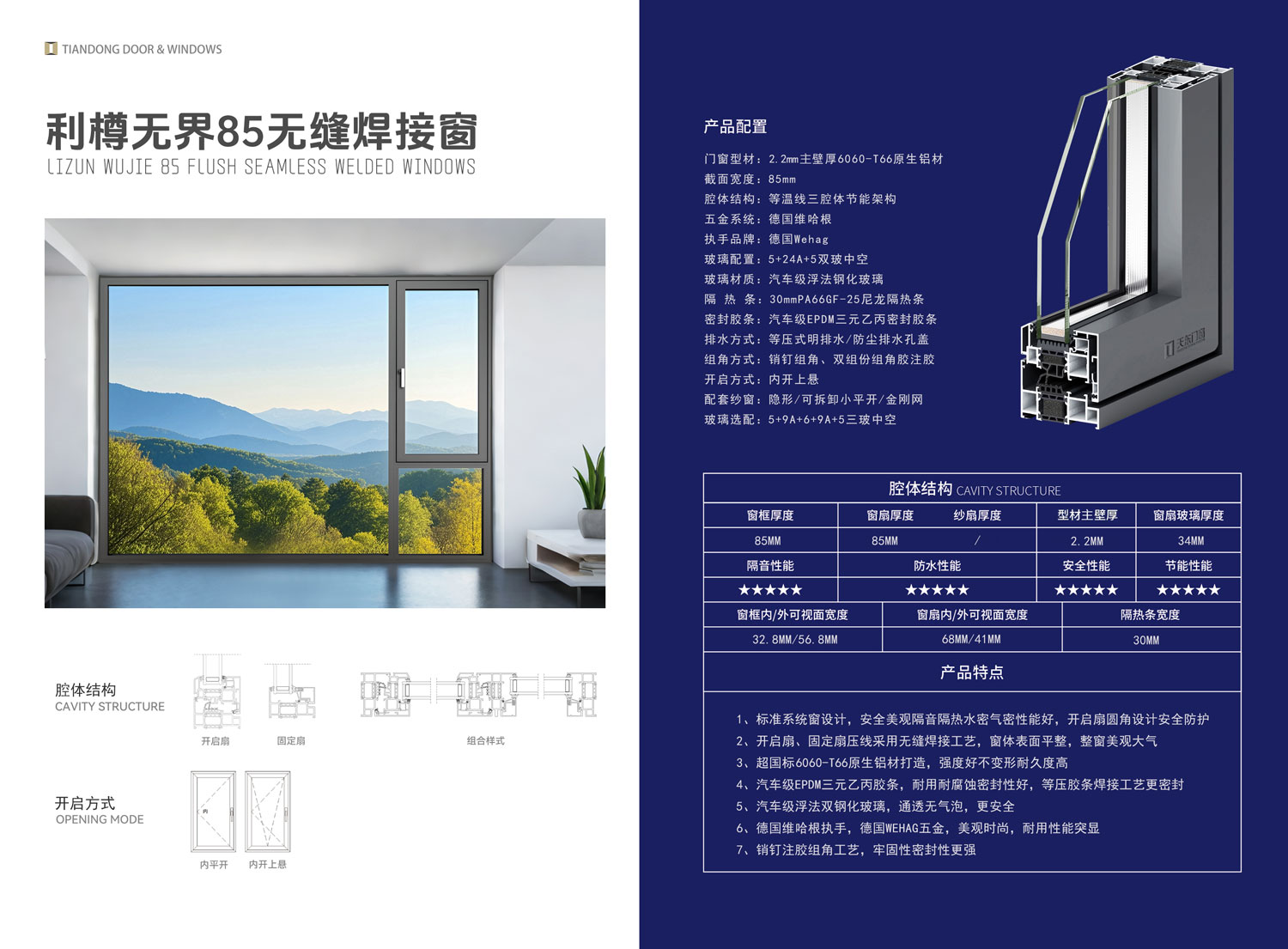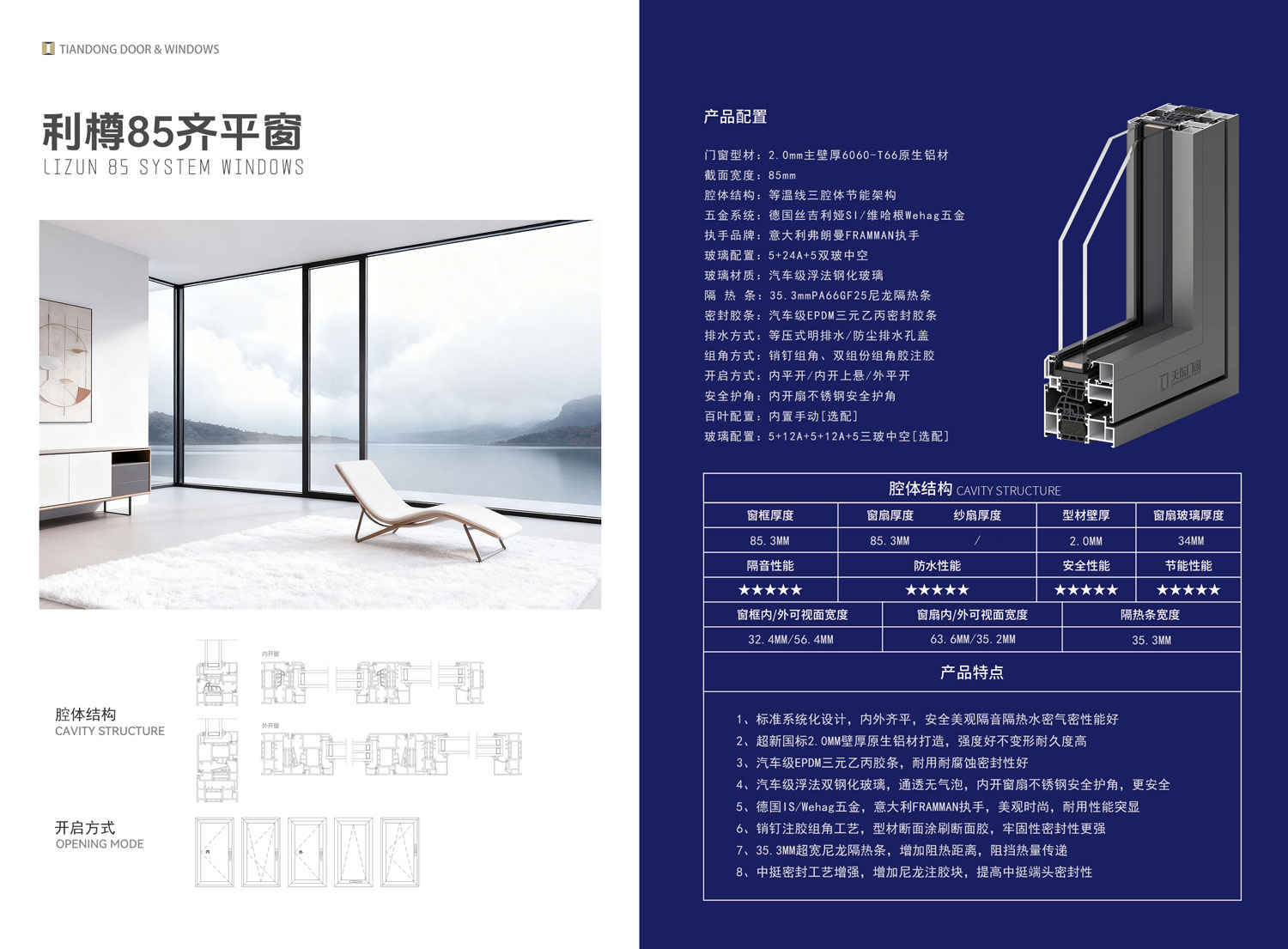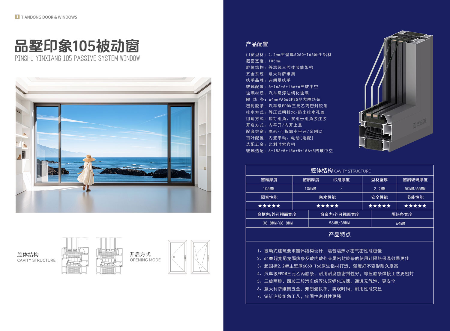 在天东门窗成立以来的24年里,天东门窗成长为门窗行业领军企业。“门窗工匠楷模”等荣誉无不显示了其对产品和服务精益求精的追求。公司十多年的门窗、幕墙设计、加工经验的基础上,以绿色、节能、标准化、系统化为前提,引进、吸收国内外先进设计理念,推出的整套结合我国国情、适合市场需求的门窗系统。 时尚新雅、人气新品“柏林情怀系列、巴黎风尚系列、中华雅韵系列”门窗的亮相,标志着天东门窗产品力又迈上了一个新的台阶。从美观性、节能、降噪、隔音、防潮等方面具有优良的表现。