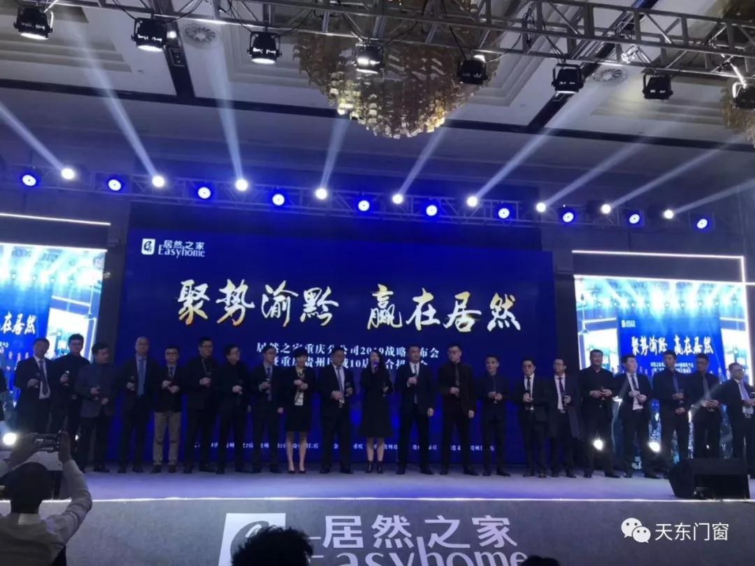2019年3月28日国内家居建材行业龙头企业居然之家在重庆举办了”聚势渝黔 赢在居然“居然之家重庆分公司2109战略发布会,暨重庆贵州区域10店联合招商会。此次居然之家在渝黔地区的发展动作,具有前瞻性、战略性,天东门窗品牌作为居然之家的战略合作伙伴,在区域发展上将深化双方战略合作关系,实现“全面战略合作,携手共赢2019”。